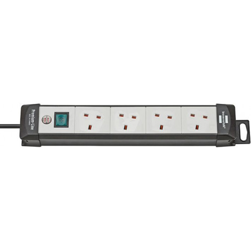 Premium-Line Multi-Way Extension Lead, Black/Grey, 4x Outlets, 3m Cable
